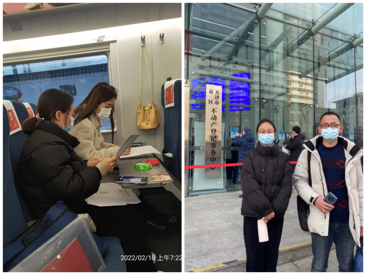 由于抵押物在天津,疫情防控形勢緊張,本著為民辦實(shí)事、為企解憂愁的宗旨,支部書記趙瑩瑩迅速部署任務(wù)分工,包括聯(lián)系天津和平區(qū)防控中心了解防控政策、預(yù)約不動產(chǎn)登記中心、安排業(yè)務(wù)經(jīng)理申請核酸報(bào)告及規(guī)劃行程路線,在確保防控措施的基礎(chǔ)上,順利完成任務(wù);業(yè)務(wù)經(jīng)理朱夢珍、高圣杰于2月10日7時出發(fā),在火車上完成合同簽訂,下午3時順利完成抵押登記手續(xù),傍晚6時乘車返回淮北,用實(shí)際行動踐行為民辦實(shí)事的初衷。