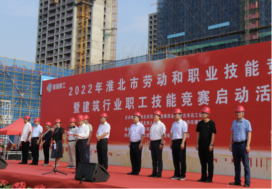 為進一步推進我市技工建設(shè),加快高技能人才培養(yǎng)選拔,促進高質(zhì)量就業(yè),2022年7月14日上午,由淮北市勞動競賽委員會、淮北市總工會、淮北市人社局、淮北市住建局主辦,淮北市建筑業(yè)協(xié)會承辦,淮海建工公司協(xié)辦的2022年淮北市勞動和職業(yè)技能競賽暨建筑行業(yè)職工技能競賽在淮北桃花源工程項目部舉行。省、市有關(guān)部門領(lǐng)導(dǎo),市建筑業(yè)協(xié)會和淮海建工公司領(lǐng)導(dǎo)出席競賽啟動儀式。