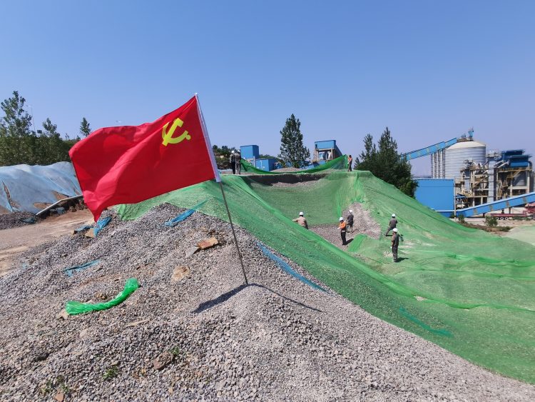 一個支部就是一座堡壘,一名黨員就是一面旗幟,行動是最有力的帶動,示范是最鮮明的垂范。為牢固樹立綠色礦山發(fā)展理念,堅決貫徹落實“綠水青山就是金山銀山”政策,2023年6月8日上午,通鳴黨支部組織黨員同志到汽修房處對裸露在外的石料進行防塵網(wǎng)的覆蓋,黨員同志們冒著酷暑,不畏炎熱,沖鋒在前,經(jīng)過一上午的努力,最終克服困難順利完成任務。通鳴黨支部著力發(fā)展基層黨組組織的戰(zhàn)斗堡壘作用和黨員的先鋒模范作用,通鳴黨支部始終堅守初心、擔當使命,敬業(yè)愛崗,用自己的實際行動讓黨旗飄揚在最高處。