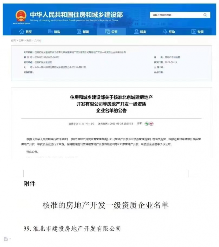 經(jīng)國家住建部核準(zhǔn),淮北建投控股集團下屬全資子公司淮北市建投房地產(chǎn)開發(fā)有限公司獲批國家房地產(chǎn)開發(fā)一級資質(zhì)。