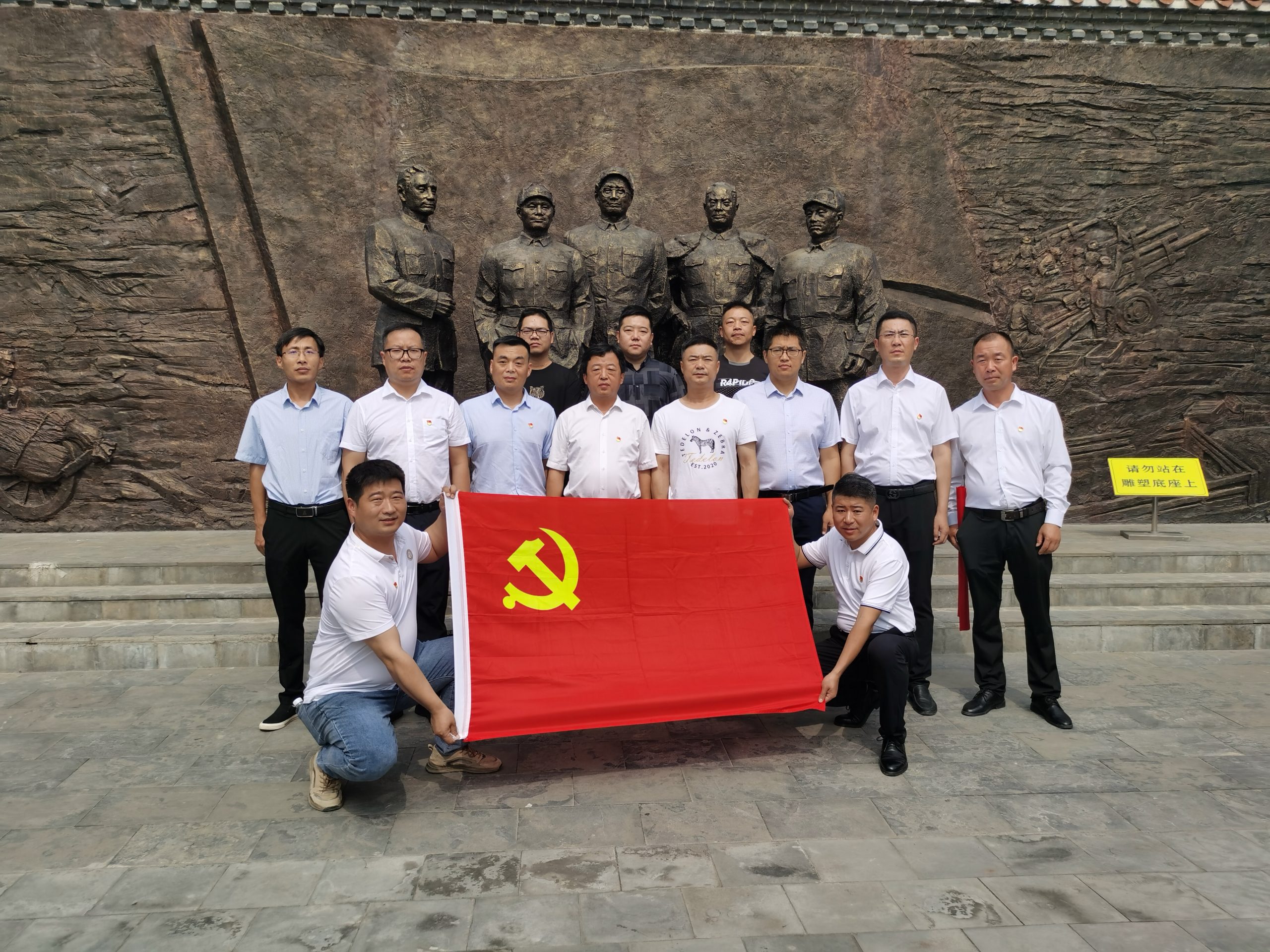 在解說員的帶領(lǐng)下,全體黨員參觀了淮海戰(zhàn)役總前委舊址各個展室,認真觀看了淮海戰(zhàn)役相關(guān)照片、實物等資料,深切感受老一輩無產(chǎn)階級革命家和戰(zhàn)士們不怕困難、英勇無畏、一往無前的革命精神。在淮海戰(zhàn)役總前委劉伯承、陳毅、鄧小平、粟裕、譚震林的巨幅浮雕前,通鳴黨支部副書記劉鵬帶領(lǐng)全體黨員,面對鮮紅的黨旗,重溫入黨誓詞。
