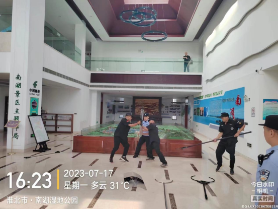 為了有效防范突發(fā)傷害事件,切實保障景區(qū)游客及員工人身安全,及時處置侵害人員安全的惡性事件,增強在真實情景下維穩(wěn)人員的心理素質(zhì)和反恐防暴意識,提高員工應(yīng)對處置能力,2023年7月17日下午16點,南湖公園公司聯(lián)合公安局烈山分局開展安全防暴防恐模擬演練活動,本次演練制定了詳細(xì)、周密的反恐防暴應(yīng)急演練預(yù)案,參加演練的部分員工,模擬突發(fā)傷害事件發(fā)生情況,進(jìn)一步提高了對突發(fā)傷害事件的防范能力。