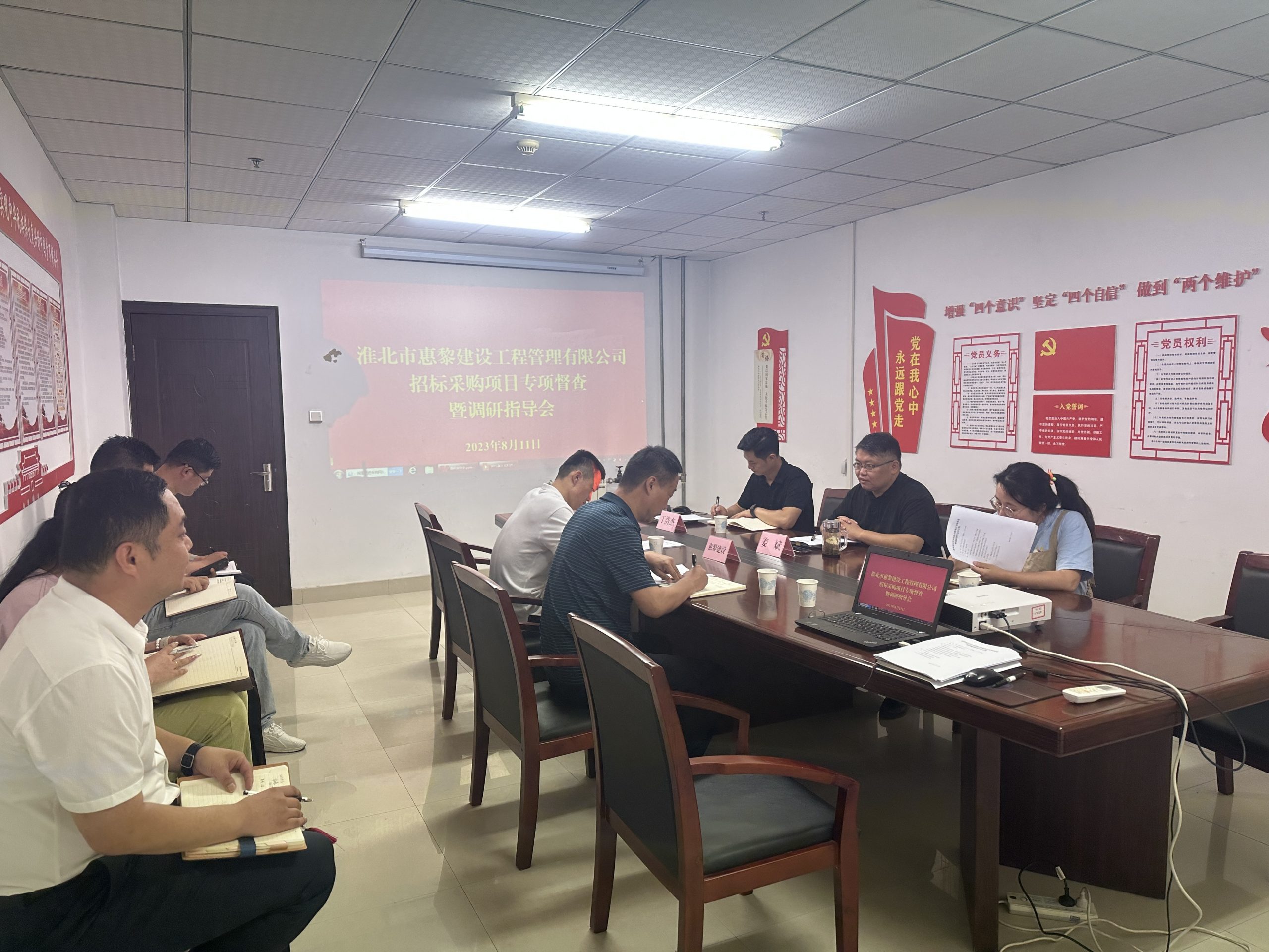 8月11日上午,市建投集團黨委委員、紀(jì)委書記、監(jiān)察專員姜斌一行到淮北市惠黎建設(shè)工程管理有限公司調(diào)研指導(dǎo)工作。姜斌一行實地查看了惠黎建設(shè)公司的辦公場所、開評標(biāo)場所和招標(biāo)代理業(yè)務(wù)的相關(guān)資料,惠黎建設(shè)主要負責(zé)人匯報了公司今年以來的業(yè)務(wù)發(fā)展情況和下一步工作打算。參會的集團公司紀(jì)委工作人員就風(fēng)險管控、提質(zhì)增效、精細化管理等方面給予指導(dǎo)。