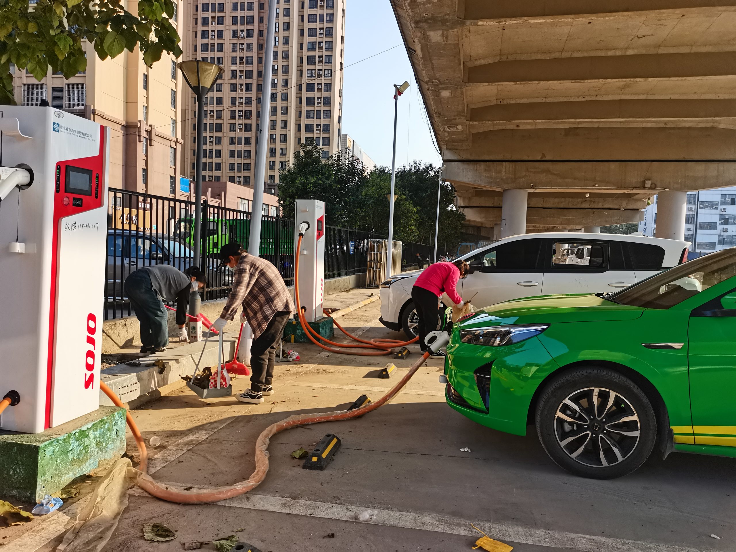 當(dāng)天,城泊員工來到長山路橋下停車場,開展清掃活動,大家拿起掃把、鐵鍬全身心投入到大掃除中。職工們有的彎腰撿拾廢紙和垃圾,有的奮力清掃路面,有的來回清運(yùn)垃圾,有的擦拭新能源充電樁的灰塵。大伙齊心協(xié)力認(rèn)真細(xì)致, 個(gè)個(gè)干勁十足,不怕臟,不怕累,對任何一處垃圾都不放過,分區(qū)域逐步清理停車場的衛(wèi)生死角,大大提高了現(xiàn)場工作效率,確?,F(xiàn)場品質(zhì)上臺階,努力打造出新能源汽車充電驛站示范點(diǎn)。
