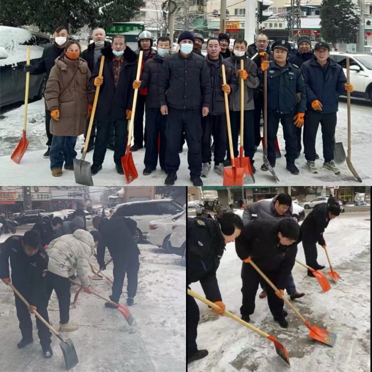 雪冷人心暖,雪厚情更濃。雖然寒風(fēng)凜冽、寒氣逼人,但到處都是同志們忙碌的身影,大家揮舞著鐵鍬,推、鏟、揚(yáng)各種方法齊上陣,分工明確、配合默契,干勁十足,用汗水融化冰雪、以齊心共御風(fēng)寒,為市民開辟出一道“平安路、暖心路”,確保市民方便出行、安全出行、溫暖出行。
