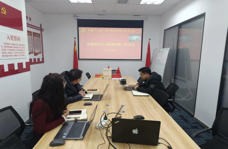 為有效控制公司業(yè)務風險,東盛租賃公司組織業(yè)務人員對現有存量業(yè)務進行了全面梳理和排查,并成立逾期項目化解小組,積極做好存量項目風險的防范和管控。2024年2月26日,東盛租賃公司總經理、逾期項目化解小組組長何曉璐就目前風險項目組織召開了逾期化解工作會議,專門研究部署風險化解事宜。