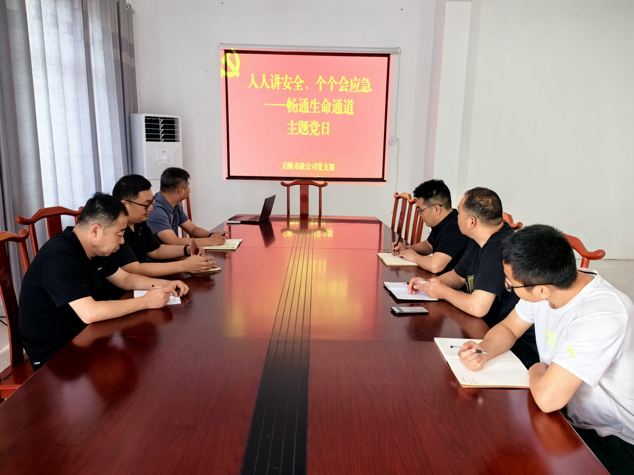 今年6月是第23個(gè)全國“安全生產(chǎn)月”,為引導(dǎo)黨員提升安全意識,提高安全履職能力,6月26日,啟航市政黨支部組織開展“人人講安全、個(gè)個(gè)會應(yīng)急——暢通生命通道”主題黨日活動。