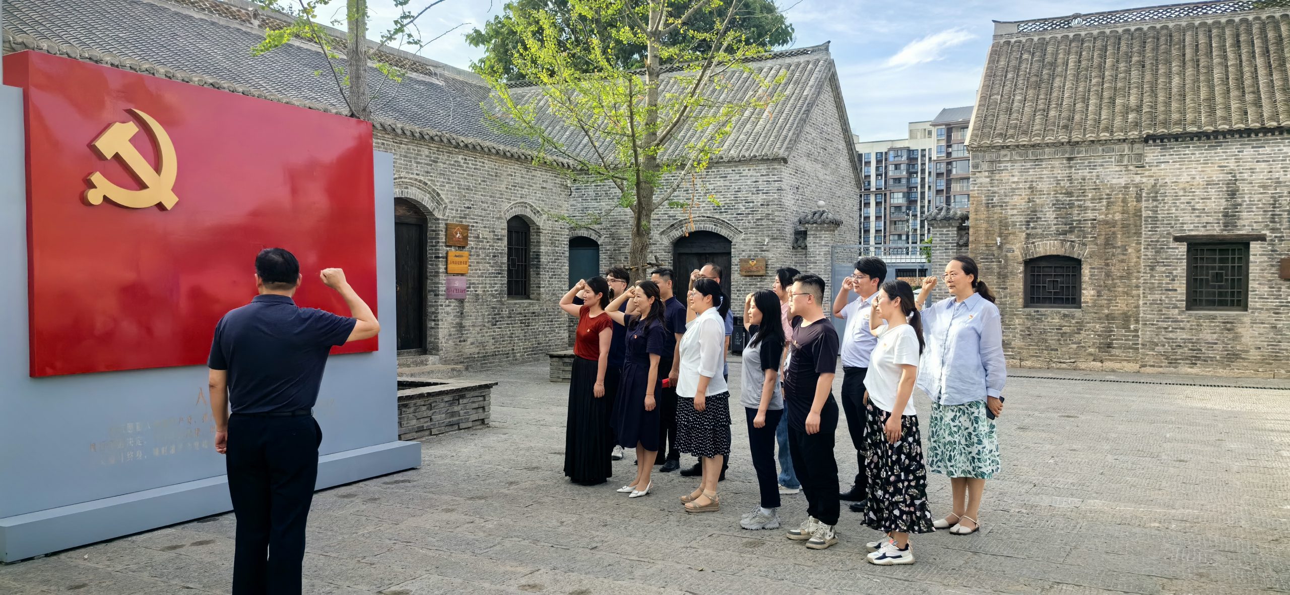 參觀之余,支部書記帶領(lǐng)全體人員重溫了入黨誓詞,面向黨旗、佩戴黨徽,拳拳誓言回蕩在小院上空。同志們紛紛表示,在這次活動中,再次深深體會到黨的優(yōu)良傳統(tǒng)和堅定的理想信念,要繼續(xù)弘揚光榮傳統(tǒng),賡續(xù)紅色血脈,從紅色基因、革命傳統(tǒng)中汲取精神力量和經(jīng)驗智慧,扎實做好各項上級安排的工作。