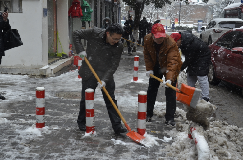 在紀(jì)委書記王獻(xiàn)忠、總經(jīng)理助理朱濤的帶領(lǐng)下,廣大干部職工紛紛拿起鐵鍬、掃帚等工具,不畏嚴(yán)寒,你鏟我掃,相互配合,一點點地將積雪和冰層鏟起清除。盡管大家的臉都凍得通紅通紅,但手中的掃雪工具卻不停地?fù)]舞著,忙得渾身是汗,在歡聲笑語中掃出了暢通的大道,受到過往市民的紛紛稱贊。