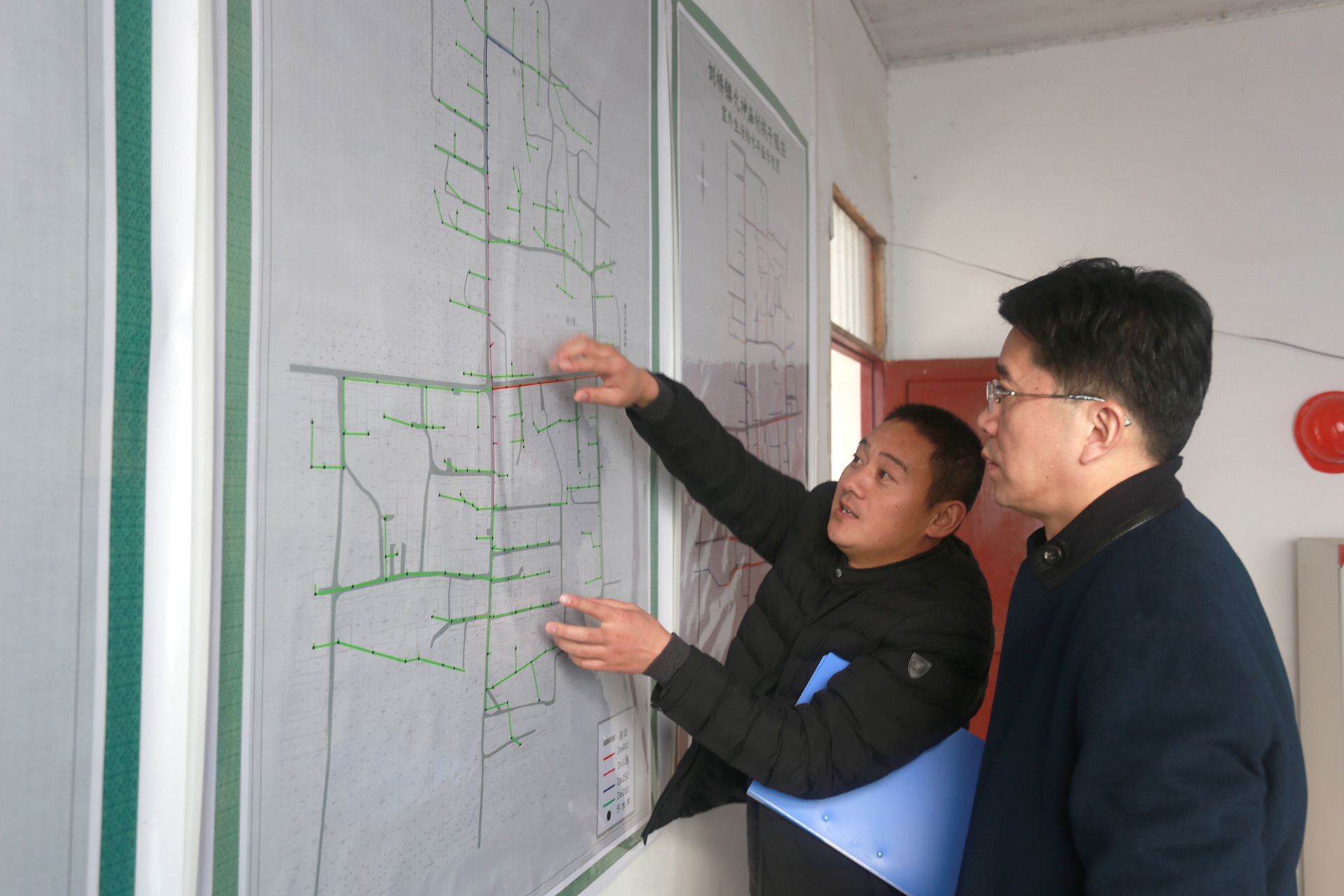 王獻忠現(xiàn)場查看了椅子圈莊給排水廁改工程規(guī)劃施工圖,實地勘察工程進展情況。與村干部、施工單位、監(jiān)理交流了解工程質量、時間節(jié)點,詳細詢問項目落實過程中的困難和問題,現(xiàn)場交辦解決問題。