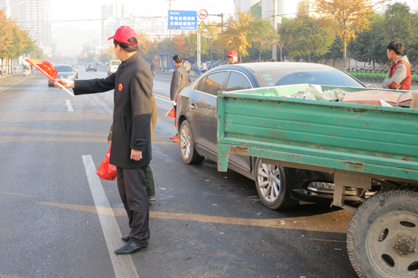 活動現(xiàn)場,志愿者們頭戴志愿者服務(wù)帽,手拿文明勸導(dǎo)小紅旗,協(xié)助交警維護(hù)交通秩序,處理突發(fā)交通事故,積極幫助尋找走失親人的外地老鄉(xiāng)聯(lián)系電臺、救助站……在活動過程中,盡管氣溫很低,但是志愿者們對老弱殘者或路人都會提供熱情的幫助,為他們排憂解難。