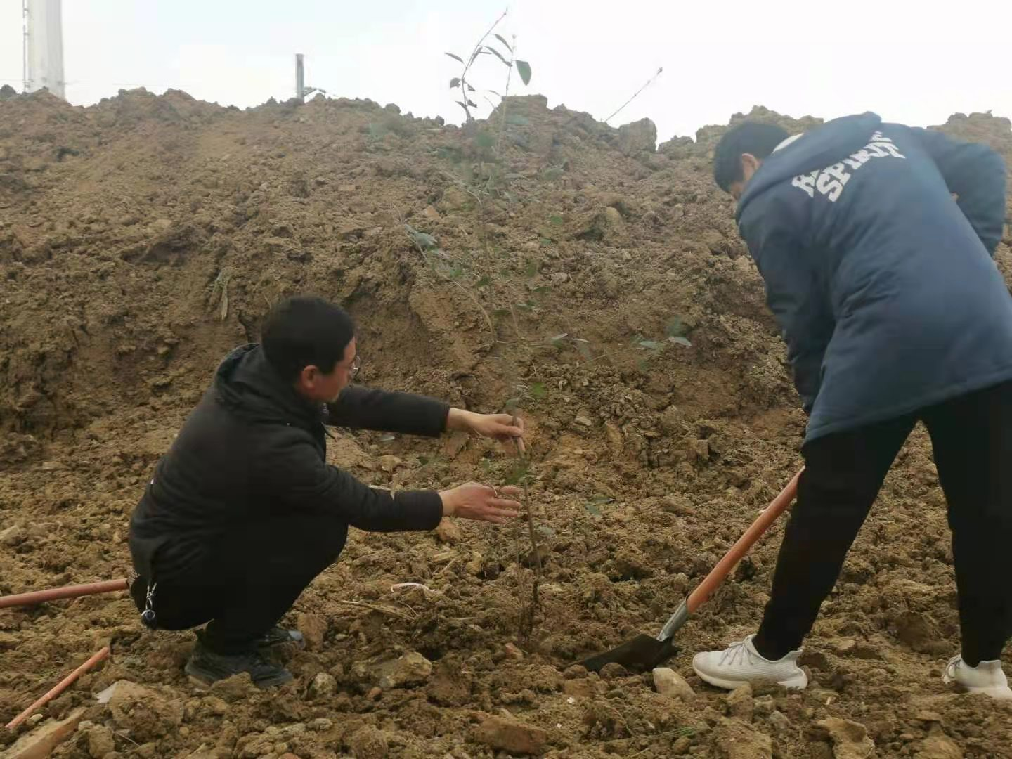 3月12日下午,支部黨員按照片區(qū)分工分別投入到植樹活動中,大家紛紛拿起鐵鍬、挖坑植苗、鏟土入坑、培實新土、灌溉澆水,大家分工明確、齊心協(xié)力,活動現(xiàn)場一派熱火朝天的勞動景象。