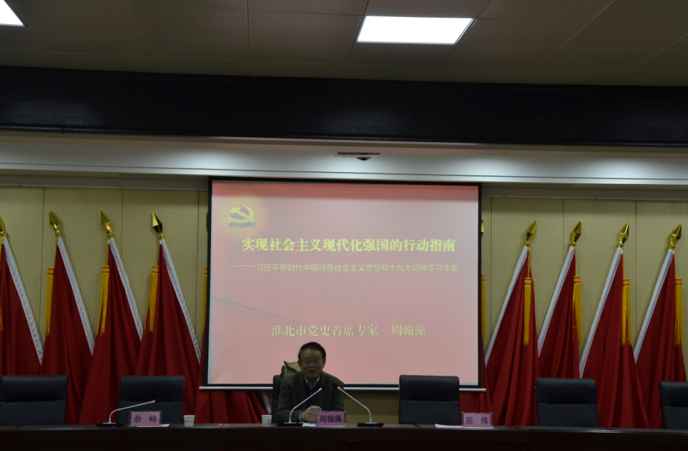 周翰藻同志以《實現(xiàn)社會主義現(xiàn)代化強(qiáng)國的行動指南》為題,從黨史研究領(lǐng)域出發(fā),深情回顧了中國共產(chǎn)黨的誕生歷程和成長史,就如何學(xué)好習(xí)近平新時代中國特色社會主義思想和黨的十九大精神進(jìn)行了深入講解。