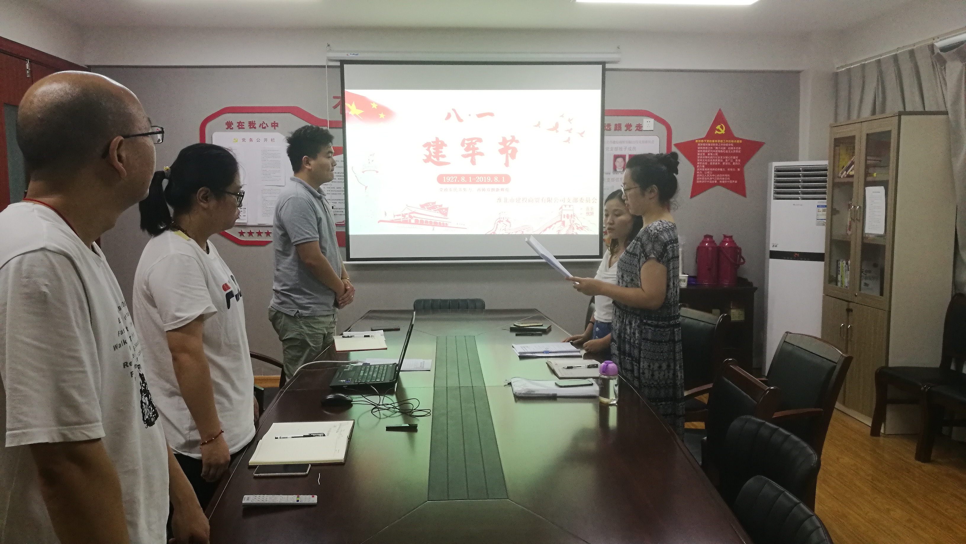 8月1日下午,建投商貿黨支部開展慶“八·一”建軍節(jié)主題黨日活動,支部副書記金曉莉主持活動。