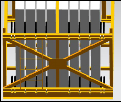 b. 第一代運輸架左右兩側(cè)必須使用立柱對拉,做好構(gòu)件傾斜的防護,如下圖示: